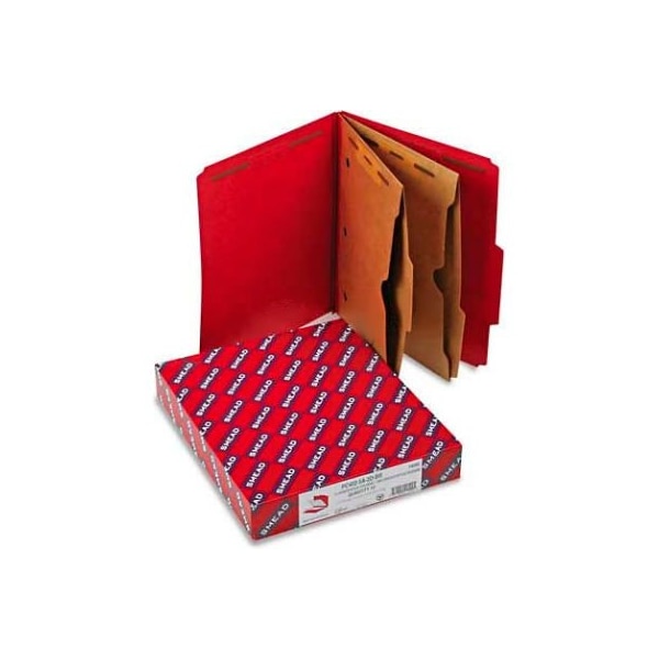 the ultimate classification folder when safety and security are most important. Safeshield bonded fasteners add protection for papers and fingers, while also reducing fastener crinkling. Includes pocket-style divider for materials that cannot be punched or stapled. Made of pressboard for extra durability. Variety of colors for color-coding projects. Classification folder type: top tab with pockets; size: letter; number of sections: 6; cover materials: 23 pt. Pressboard. this product arrives to most customers in 2-3 business days.