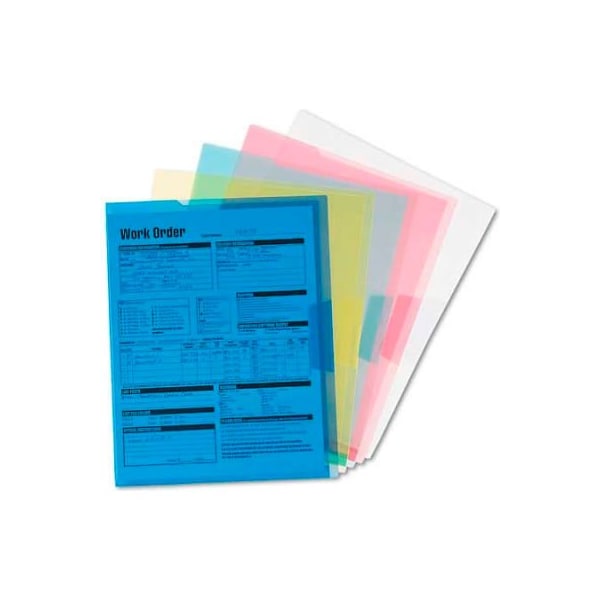 Smead project jackets, letter, poly, clear/translucent: blue/green/yellow/red, 5/pack open on top and side with a tuck flap that locks pages safely inside, protected from dirt and moisture. Pvc free and archival quality. File jackets/ sleeves/wallets type: project jacket; material(s): polypropylene; height: 11 3/4". larger quantity quotes available. Please call 1-888-978-7759. this product arrives to most customers in 2-3 business days.
