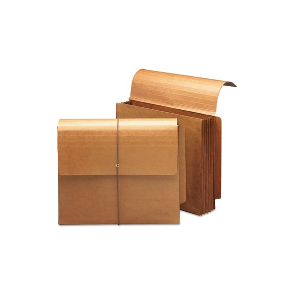 Top tab file folders fit neatly inside without bulging out the side gussets. Protective flap with elastic cord closure ensures that contents stay put. Works with your existing shelf filing system. Double thick front and back panels for extra strength. Expands up to 5.25in for greater storage capacity. Full-height redrope gussets, with rollover tear resistant material reinforcement at top for durability. Pocket/Wallet Type: Files/Papers; Size: Letter; Overall Expansion: 5.25in; Closure Type: Elastic Cord.