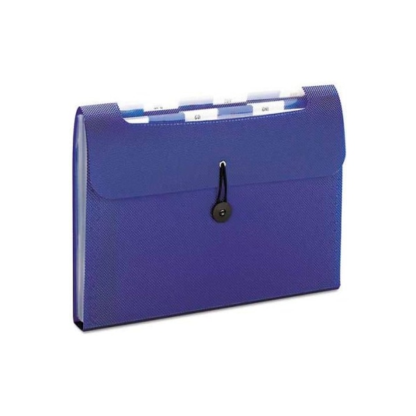 Smead step index organizer, 12-pocket, letter, poly, navy innovative tiered tabs let you see everything at a glance. Clear window makes viewing file contents easy. Durable, embossed poly material resists tear and moisture. Preprinted plus blank tab inserts for easy indexing and customization. Flap and elastic cord closure keep contents secure. Expandable file folder type: elastic cord closure wallet; indexed; size: letter; width: 13". larger quantity quotes available. Please call 1-888-978-7759. this product arrives to most customers in 2-3 business days.
