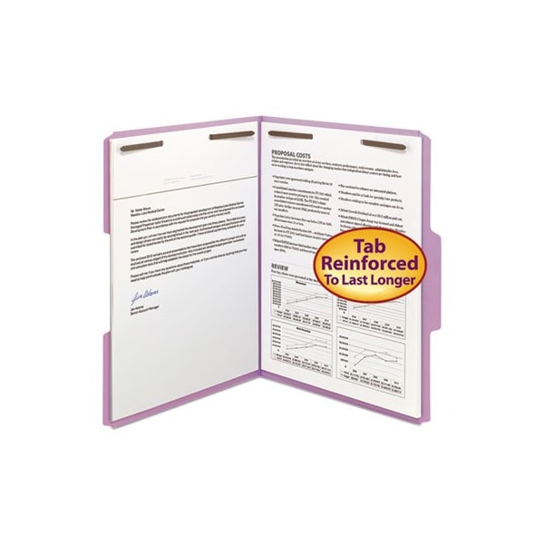 Smead, TOP TAB COLORED 2-FASTENER FOLDERS, 1/3-CUT TABS, LETTER SIZE, LAVENDER, 50PK