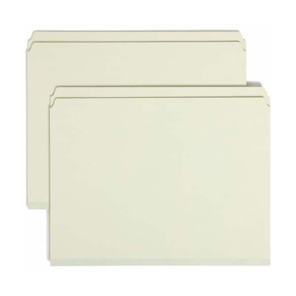 Use these gray, heavy-duty pressboard folders for bulky, heavily used files. Tear-resistant gusset with double-thickness expands 1'' to accommodate your bulkiest files. 25 point pressboard resists wear and tear. Folders offer a straight-cut tab that is 1/2'' high and high percentage of recycled content.