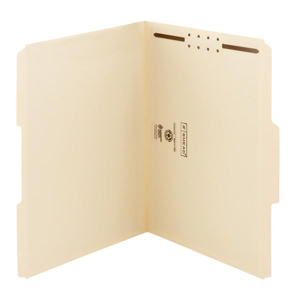 Fastener folders feature 2" prong, K-style fasteners to subdivide documents so you can keep them secure and in order. Each fastener provides superior strength to secure large amounts of paper. Double-strength tabs are 1/2" high and in assorted 1/3-cut positions. Folders are made from 11 point manila stock and are scored for 3/4" expansion.