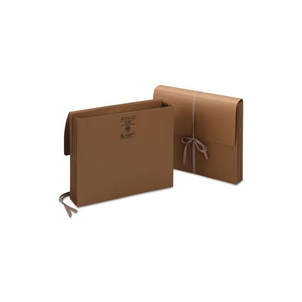 Safely transport and store documents of any size with these durable and economical wallets. Protective flap with cloth tape tie closure for document security. Double-thick front and back panels. Extra wide pockets easily accommodate standard file folders. Made of redrope stock. Full-height redrope gussets, rollover reinforced with tear resistant material at top. Pocket/Wallet Type: Files/Papers; Size: Letter; Overall Expansion: 3.5in; Closure Type: Cloth Tie.