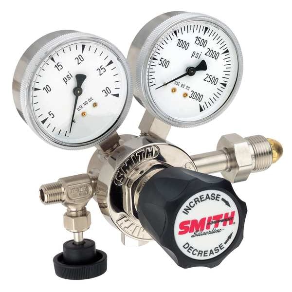 High Purity Gas Regulator, Argon, Helium, Nitrogen, Single Stage, 0.965"-14 Inlet, 1/4 in Outlet