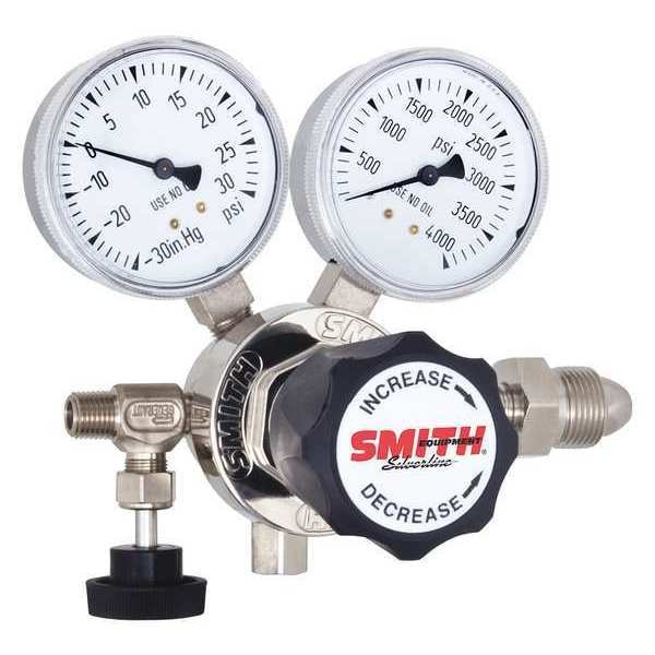 High Purity Gas Regulator, Carbon Dioxide, Single Stage, 0.825"-14 Inlet, 1/4 in Outlet