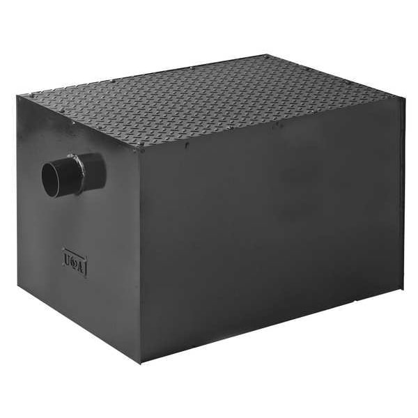 Grease Interceptor, Outlet Connection Type No Hub, Application Fat, Grease, Oil, Overall Depth 19 3/4 in, Overall Width 23 1/4 in, Color Black, Standards CSA, IAPMO, UPC, Inlet Pipe Size 3 in, Finish Coated Fabricated Steel, Flow Rate 50 gpm, Capacity 100 lb, Includes Flow Control, Material Steel, Inlet Connection Type No Hub, Outlet Pipe Size 3 in, Overall Length 31 5/8 in, Product Type Grease Interceptor