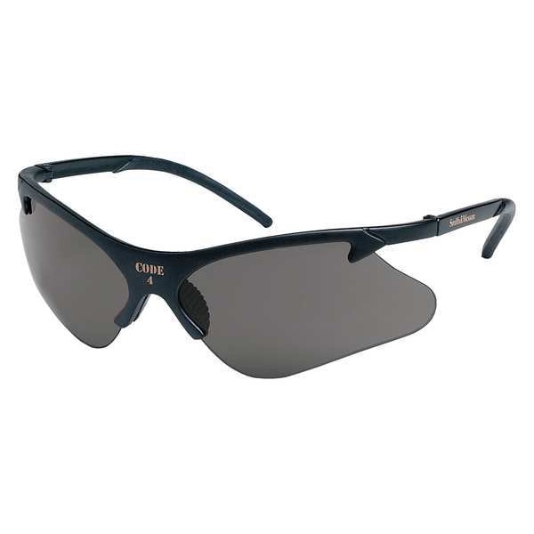 Code 4, Safety Glasses, Anti-Scratch, Gray Lens, Black Frame, Half-Frame