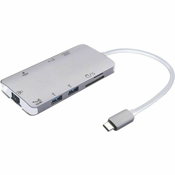 USB-C Mini Docking Station, HDMI, 3 x USB-A, SD/micro SD, GbE, 100w PD, 12 cable
