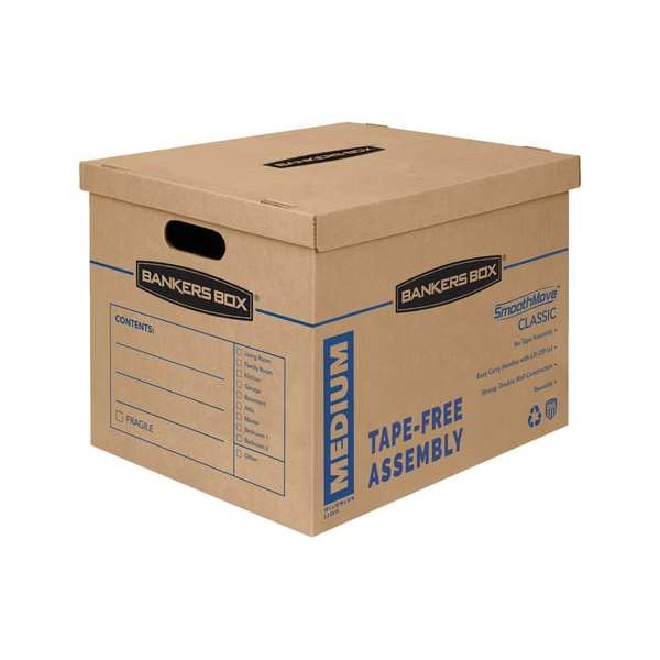 Moving Box, Wall Type Double Wall, Inside Length 18 in, Inside Width 15 in, Inside Height 14 in, 18x15x14 in Inside LxWxH, 32 ECT, Wall Thickness 1/8 in, Material Kraft Corrugated Board, Color Kraft/Blue Printing, Inside Length Range 17 in to 19 in Length Shipping Boxes, Package Quantity 10
