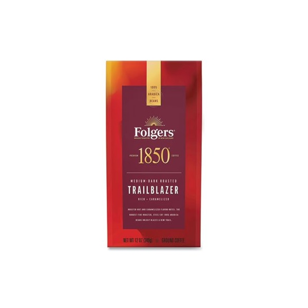 Coffee, steel cut and fire roasted. All 1850 coffee is made with 100 percent Arabica beans which offer a bold yet smooth flavor. Folgers 1850 Coffee Roasts are made with fire-roasted, steel-cut coffee beans using time honored roasting and grinding techniques for timeless taste. These unique coffee blends are full of flavor. They're excitingly bold yet amazingly smooth. Crisp and clean. Robust and balanced. In the form of ground coffee, it's versatile enough to prepare in any way you please, at home or in the office. No matter how you brew it, from French press to drip machine, Folgers 1850 coffee is sure to be one of the most amazing cups you've ever had. Ground. Beverage Type: Coffee; Flavor: Trailblazer; Roast Type: Medium; Packing Type: Bag.