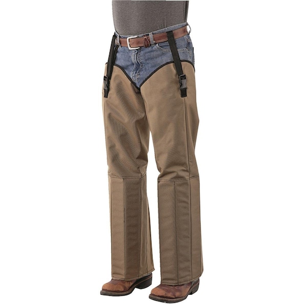 Heavy-Duty, Waterproof Snake Chapz are cool, comfortable and easily attach to your belt with adjustable clips and strapping. Tan color. 2.1 lb. Sold as a pair.