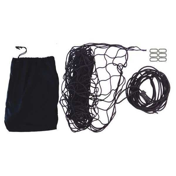 Cargo Net, Color Black, Net Material Nylon, Includes 6 Snap-Hook Carabiner, Cinch Rope, Storage Bag, Tensile Strength 400 lb/in, Net Width 5 ft, Net Length 8 ft, Net Shape Rectangle, End Type Snap Hook, Number of Mounting Points 6, Manufacturers Warranty Length 90 Days, Hole Width 4 in, End Material Plastic