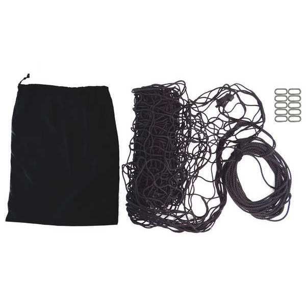 Cargo Net, Color Black, Net Material Nylon, Includes 10 Snap-Hook Carabiner, Cinch Rope, Storage Bag, Tensile Strength 400 lb/in, Net Width 8 ft, Net Length 12 ft, Net Shape Rectangle, End Type Snap Hook, Number of Mounting Points 10, Manufacturers Warranty Length 90 Days, Hole Width 4 in, End Material Plastic