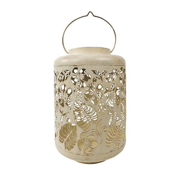 Bliss Outdoors BSL305WH Solar LED Lantern w Tropical Flower Design Hand Painted Finish, 12in Tall, Waterproof IP44 White With the Bliss Outdoors Decorative Solar 2Mode LED Lantern, you'll cast a beautiful illuminated design that will add ambience and charm to any living, gardening, or patio space You get a large solar lantern that measures 12 tall x 775 in diameter, and has a dusk to dawn feature so it automatically illuminates at night and turns off at dawn Featuring 2 modes of light choices A steady warm LED light, or a wonderful 5 color gradual transition mode for the perfect ambience in any setting It includes a 600 mAh battery and a polycrystal solar panel that gives you 68 or running time of light when fully charged during the day for 46 hours under sunlight Designed with a tropical flower pattern that's laser cut on the lanterns surface so when illuminated, it casts a beautiful design shadow pattern that's warm and pleasant to the eye The lantern is durable and made of highquality metal, then hand painted in a gorgeous brushed antique painted finish These solar lanterns are also IP44 waterproof rated so it can withstand the element comes with a handle so you can hang it or stand it on a table It's an ideal gift for loved ones, holidays, housewarming or for anyone who wants to add a bit of charm to their living spaces Find your Bliss