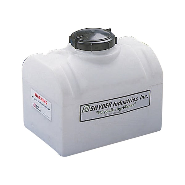Designed for durability and efficiency, the Snyder Industries 8 Gallon Horizontal Applicator Tank is the perfect solution for liquid storage and application in agricultural, industrial, and commercial settings. Constructed from high-quality, chemical-resistant polyethylene, this tank is built to withstand exposure to fertilizers, pesticides, herbicides, and other liquid solutions. Featuring a compact horizontal design, this tank is ideal for mounting on sprayers, trailers, or other equipment where space is limited. Made with UV-stabilized material that ensures long-lasting performance in outdoor conditions. With a secure 6" lid and 1" diameter, 3/4" long, 1/2" ID threaded molded spout outlet for easy connection, the Snyder 8-gallon applicator tank offers reliable and convenient liquid storage for a variety of applications.