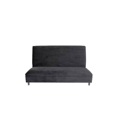 85" Dark Gray Polyester Blend Convertible Futon Sleeper Sofa And Toss Pillows With Silver Legs