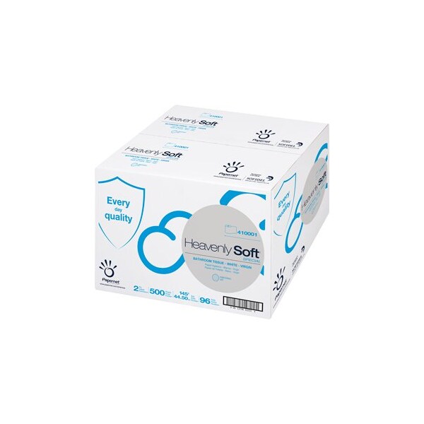 Heavenly Soft Bath Tissue is a 2-ply product measuring 4.1 by 3.5 inches per sheet 500 sheets. Manufactured by Sofidel, this bath tissue offers a balance of softness and strength suitable for everyday use. The dimensions ensure compatibility with standard dispensers. Designed for personal hygiene, it provides effective cleaning with a gentle texture. The product is crafted to deliver reliable performance in residential or commercial bathroom settings and is available in a pack of 96.