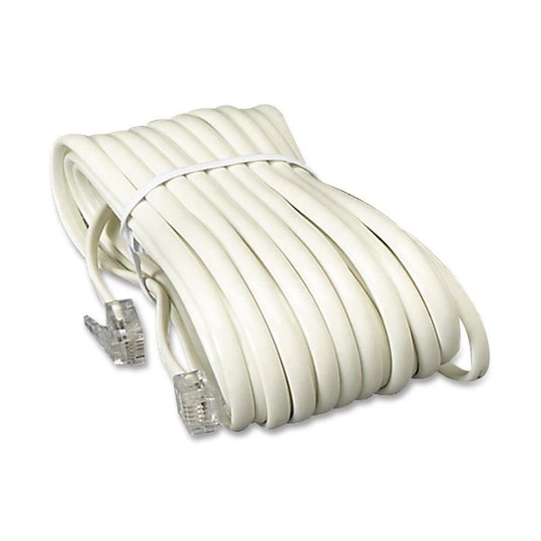Keep this phone line cord extension in your office or home to allow flexible placement of your phones wherever you may need them. Its 25' length allows you to conveniently place your telephone at the most optimal location for your room. Plus, use it with your coupler to extend your phone line even further or use it to connect your cable modem phone jack to a phone line feed jack. With modular connectors on each end, this phone jack wiring fits standard wall jacks and telephones.