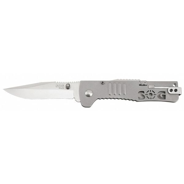 If you are looking for a high-quality, easy to use knife, the SOG SJ31-CP Folding Knife is what you need. The 3 3/16 in. clip point blade is made of AUS-8 stainless steel with a satin finish and has an Rc. 56-58 hardness rating. Featuring the SOG Assisted Technology, this slim folding knife opens quickly and easily with just one hand. The ultra thin handle design makes it comfortable to hold and carry around. You will love using the SOG SJ31-CP Folding Knife for your next outdoor adventure.