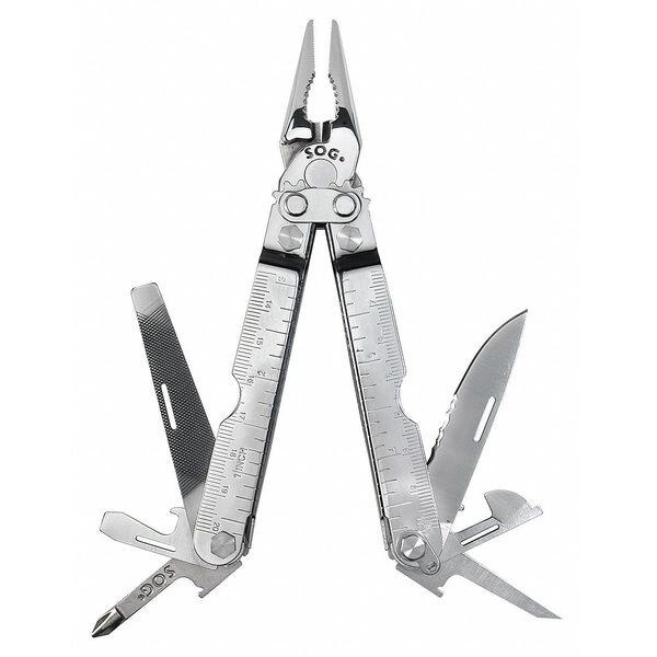 Multi-Tool, Features Needle Nose Pliers, Hard Wire Cutter, 1/2 in Serrated Blade, 3 Sided File, Medium Flat Screwdriver, Philips Screwdriver, Small Flat Screwdriver, Large Flat Screwdriver, Awl, Can/Bottle Openers, Rules, Lanyard Ring, Bolt Grip Channel, Handle Color Dark Brown