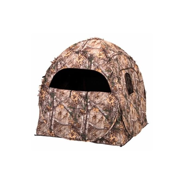 Ameristep 66 Tall Real Tree Edge Camouflage Pattern Doghouse Hunting Ground Blind Ideal For Firearm & Bow Hunting Shoot Through Mesh With Gun Port Includes Stakes & High Wind Tie Downs & Carrying Backpack Assembled Dimensions: 60W x 60L x 66H.