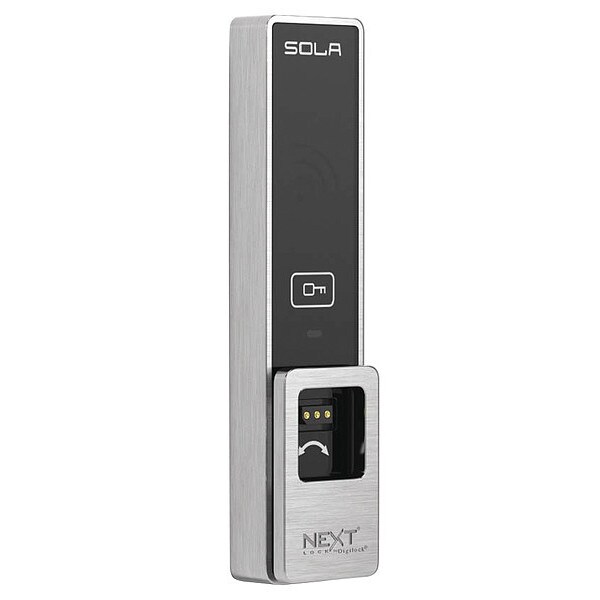 Electronic Keyless Lock, For Use With Cabinet Doors, Lockers, Access Method Keypad, Usage Assigned, Shared, Handle Type Thumb Turn, Door Thickness 0.03 in to 1.57 in, Lock Material Zinc, Finish Brushed Nickel, Series Sola 3, Hand Right Hand, Outside Height 5.24 in, Outside Depth 0.61 in, Outside Width 1.24 in, Latch Length 0.35 in to 1.70 in, Keypad Material Plastic, Number of Keys on Keypad 12, Timed Entry Allowance 6 sec, Features Audible Indicator, Auto Unlock, Code Managed, RFID