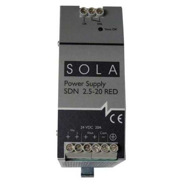 Redundancy Module, For Use With Sola SDN Series DC Power Supplies, Mounting Type DIN Rail, Input Voltage 10.8 to 30.8V DC, Voltage Output 24V DC, Amps 20, Peak Amps 20 A, Output Noise Less Than 3.0mV, Status Indicator LED, Case Material Metal, Height 4.88 in, Width 1.97 in, Depth 4.55 in, Temp. Range -13 to 185 Degrees F, Standards ABS, ATEX, CE, cRUus, cULus, DNV-GL, ExEAC, IECEx, RoHS