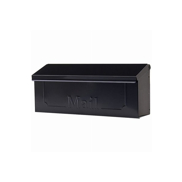 Townhouse black galvanized steel horizontal wall mount mailbox Constructed from durable galvanized steel The mailbox features a black powder coat finish for lasting color and shine to protect against weather Its classic shape is enhanced by an embossed border and the word 'Mail', making its purpose easy to identify The incoming mail opening is the full length and width of the mailbox and offers ample space for envelopes, rolled magazines and padded envelopes This easytoinstall unit comes fully assembled for quick and hassle free installation Mounting hardware sold separately The dimensions are 63 H x 155 W x 312 D
