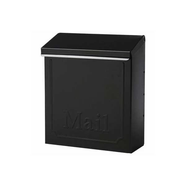 Townhouse black steel vertical locking wall mount mailbox Constructed from heavyduty galvanized steel and features a concealed cam lock with 2 keys With a durable powder coat finish, the Townhouse keeps its good looks and your mail stays safe The easylift tab lid provides smooth operation, concealing the delivery slot which is approximately 85 W x 08H The Townhouse may also be used as a simple, secure dropbox Some assembly is required and mounting hardware is sold separately