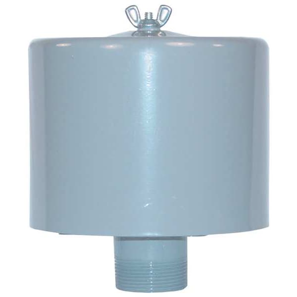 Item Filter Silencer, Connection Style Screw On, Design Hood, Filter Material Polyester, Filter Rating 5 micron, Filtered Substance Particulate, Filtration Efficiency 99 Percent, Housing Material Carbon Steel, Maximum Flow Rate 55 cfm, Maximum Operating Temperature 220 Degrees F, Minimum Operating Temperature -15 Degrees F, Nipple Length 1.5 in, Number of Air Outlets 1, Outlet Size 1 in, Outlet Type MNPT, Outside Diameter 6 in, Overall Height 6.62 in