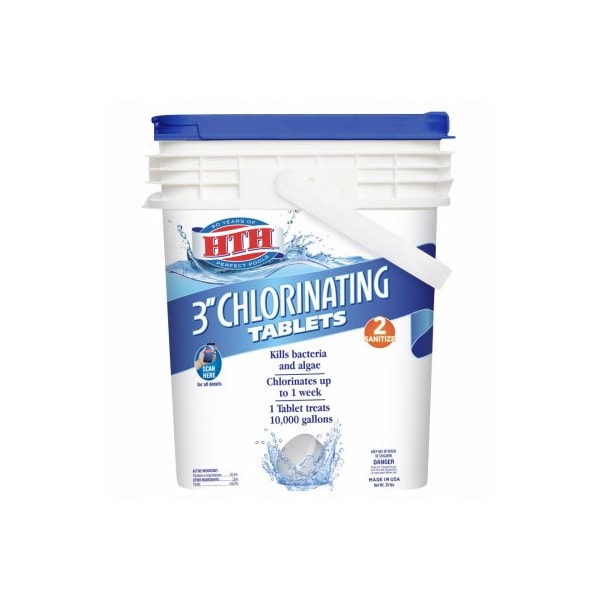 HTH, 35 LB, 3 Stabilized Chlorine Tablets, Sanitizes Pool Water, Stabilized, Sun Protected For Extended Chlorine Life, For Use In Skimmer Or Floater, Protects Against Bacteria Algae Growth, Active Ingredients TrichlorsSTriazinetrione 924, Zinc Sulfate Monohydrate 35, Other Ingredients 76, Available Chlorine 84