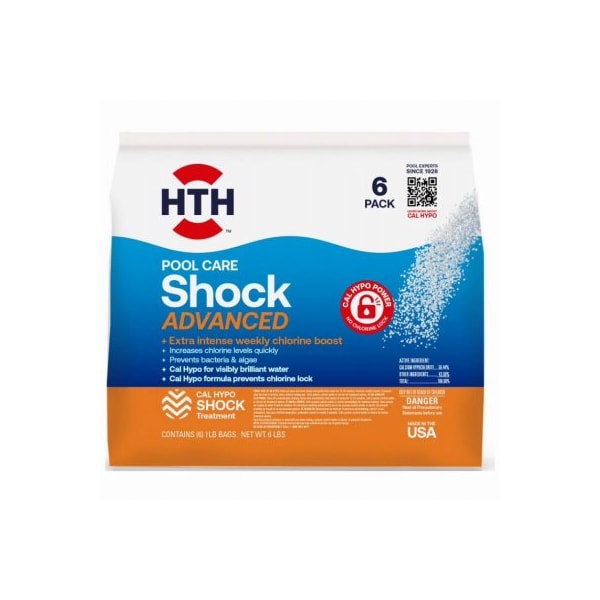 HTH, 6 Pack, LB, Super Shock Treatment Bag, Powerful Shock Treatment That Provides Crystal Clear Results In 24 Hours, Kills Bacteria Algae, Available Chlorine 52, Good For All Pool Surfaces
