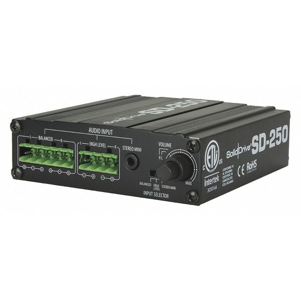 Amplifier, Nominal Length 5 in, Nominal Outside Width 5 in, Nominal Height 1 3/8 in, Output Wattage 50 W, Item Primary Material Plastic, Standards CE, ETL-C/US Liisted, FCC Compliant, RoHS Compliant, UL60065 Listed, Includes 3-Pin Euroblock, 4-Pin Euroblock, Mounting Hardware, Power Supply, Stereo RCA Adapter, For Use With Speakers, Primary Color Black, 2 Number of Channels, Wireless No, Frequency Response - Speakers 20Hz to 20KHz, Impedance (Ohms) 8 ohm