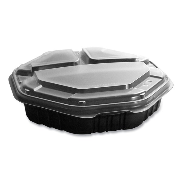 OctaView Hinged-Lid Hot Food Containers, 3-Compartment, 38 oz, Black/Clear, Plastic, 100PK (Discontinued)