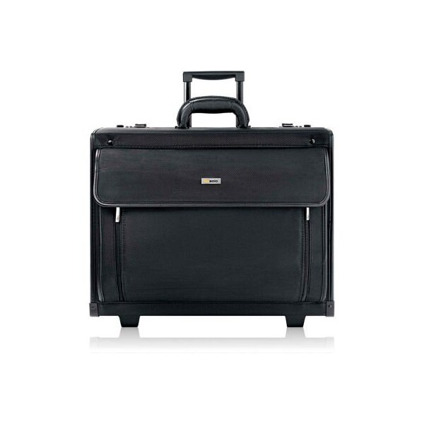 Solo rolling laptop case, pv784, 18-1/4" x 10-1/2" x 14-3/4", polyvinyl/polyester, black padded section protects laptops up to 16". Front zip-down organizer section. File pocket. Dual combination locks. Sturdy carry handle. Telescoping handle system. Polyester body. this product arrives to most customers in 2-3 business days.