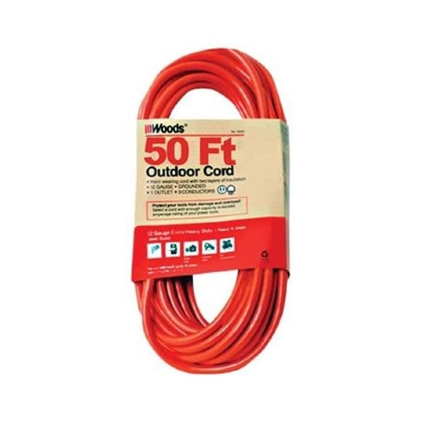 SJTW Extension Cord, 16 AWG, 16/3, Orange, 50 ft