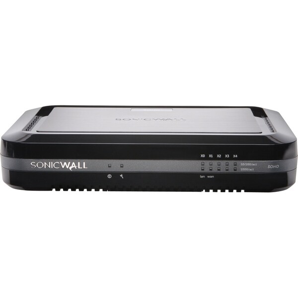 This SONICWALL brand Soho Appliance has a depth of 5.6", a width of 7.5", and a height of 1.4". It is a network security/firewall appliance.