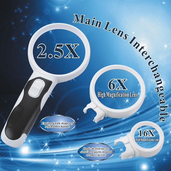 2 LED Magnifier with 3 Interchangeable Lens