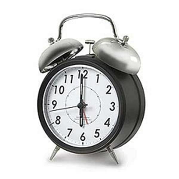 It looks--and sounds--like a classic analog alarm clock from by-gone days. Beneath its retro facade however beats the digital heart of a radio-controlled clock that sets itself everyday by synchronizing with the nation s atomic clock in Boulder Colorado. The classic dual-bell alarm rings out with a distinct nostalgic sound when it s time to rise.It takes 1 C batteries. 7 in. high. X 4.5 in. wide X 2 in. deep.