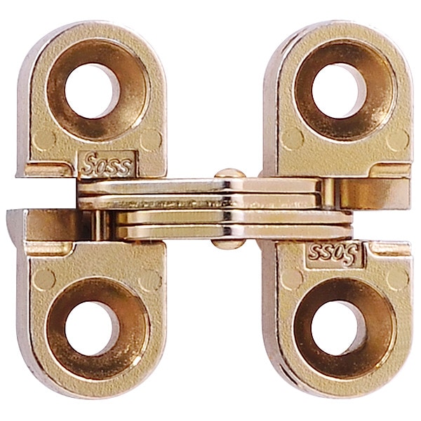 Concealed Hinge, Brass Material, Satin Brass Finish, Not Applicable Load Capacity, With Holes, 2 Holes per Leaf, No Ligature Resistant, 180 Degrees Range of Motion, Orientation Non Handed, 1 in Door Leaf Height, 1 in Frame Leaf Height, 3/8 in Door Leaf Width, 3/8 in Frame Leaf Width, 0.469 in Door Leaf Thickness, 0.469 in Frame Leaf Thickness, 1/2 in Required Door Thickness, Rounded Corners, Included Hardware, Full Mortise Mounting, Steel Pin Material, Nonremovable Pin Type
