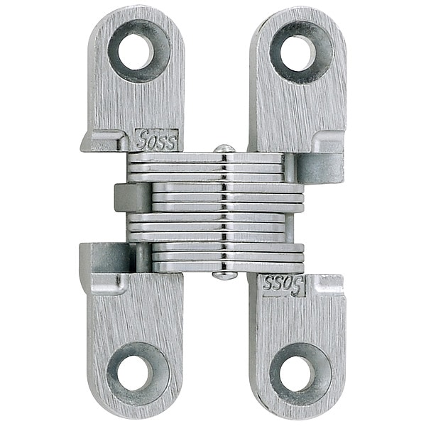 Concealed Hinge, Zamac/Steel Material, Satin Chrome Finish, Not Applicable Load Capacity, With Holes, 2 Holes per Leaf, No Ligature Resistant, 180 Degrees Range of Motion, Orientation Non Handed, 1 11/16 in Door Leaf Height, 1 11/16 in Frame Leaf Height, 3/8 in Door Leaf Width, 3/8 in Frame Leaf Width, 0.453 in Door Leaf Thickness, 0.453 in Frame Leaf Thickness, 1/2 in Required Door Thickness, Rounded Corners, Included Hardware, Full Mortise Mounting, Steel Pin Material, Nonremovable Pin Type