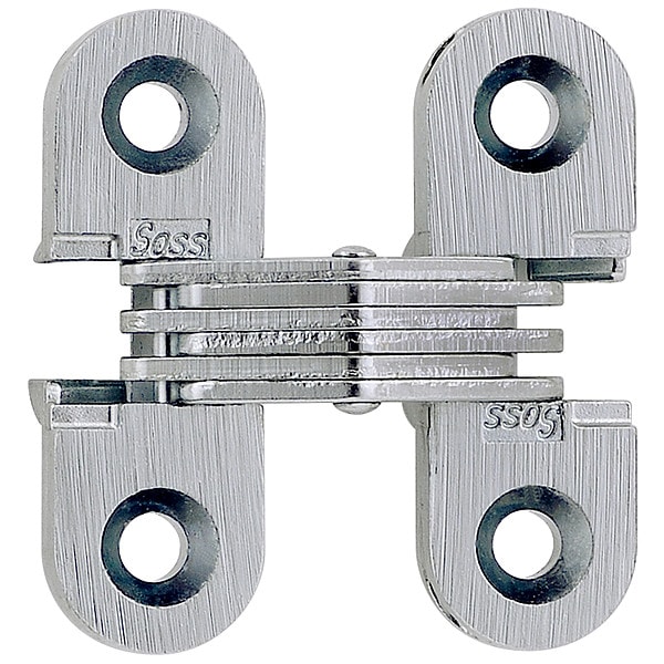 Concealed Hinge, Zamac/Steel Material, Satin Chrome Finish, Not Applicable Load Capacity, With Holes, 2 Holes per Leaf, No Ligature Resistant, 180 Degrees Range of Motion, Orientation Non Handed, 1 1/2 in Door Leaf Height, 1 1/2 in Frame Leaf Height, 1/2 in Door Leaf Width, 1/2 in Frame Leaf Width, 0.594 in Door Leaf Thickness, 0.594 in Frame Leaf Thickness, 3/4 in Required Door Thickness, Rounded Corners, Included Hardware, Full Mortise Mounting, Steel Pin Material, Nonremovable Pin Type