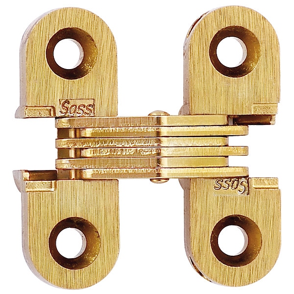 Concealed Hinge, Brass Material, Satin Brass Finish, Not Applicable Load Capacity, With Holes, 2 Holes per Leaf, No Ligature Resistant, 180 Degrees Range of Motion, Orientation Non Handed, 1 1/2 in Door Leaf Height, 1 1/2 in Frame Leaf Height, 1/2 in Door Leaf Width, 1/2 in Frame Leaf Width, 0.594 in Door Leaf Thickness, 0.594 in Frame Leaf Thickness, 3/4 in Required Door Thickness, Rounded Corners, Included Hardware, Full Mortise Mounting, Steel Pin Material, Nonremovable Pin Type