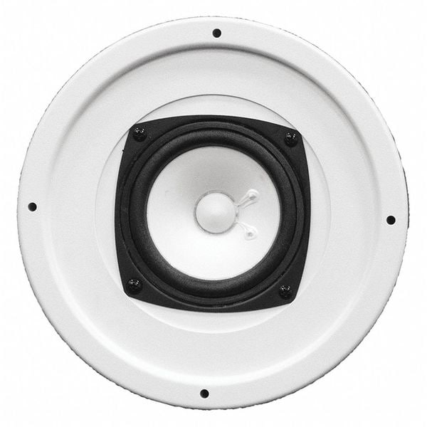 Speaker, Raw Frame, Overall Height (In.) 4, Overall Width (In.) 11, Overall Length (In.) 11, Enclosure Color White, Enclosure Material Plastic/Metal, Tweeter Dia. (In.) 4 in, Tweeter Composition Polypropylene, Woofer Dia. (In.) 5 in, Woofer Composition Paper, 20 W Watt (RMS), Max. Wattage 20 W, Sensitivity (dB) 88 dB, Impedance (Ohms) 16 ohm, Transformer Settings 25V/70V/100V, Frequency Response 100Hz to 22KHz, Weight (Lbs.) 4, Includes Mounting Hardware