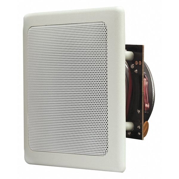 Speaker, Raw Frame, Overall Height (In.) 7, Overall Width (In.) 10, Overall Length (In.) 7, Enclosure Color White, Enclosure Material Plastic/Metal, Tweeter Dia. (In.) 3 in, Tweeter Composition Polypropylene, Woofer Dia. (In.) 5 in, Woofer Composition Paper, 20 Watt (RMS), Max. Wattage 20 W, Sensitivity (dB) 88 dB, Impedance (Ohms) 8 ohm, Transformer Settings 25V/70V/100V, 1 Power Taps @ 25V, 10 Power Taps @ 75V, Frequency Response 100Hz to 22KHz, Weight (Lbs.) 3, Includes Grille, Paint Mask
