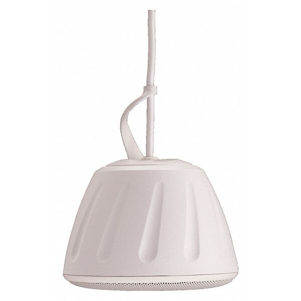 Speaker, Indoor Pendant, Overall Height (In.) 7, Overall Width (In.) 10, Overall Length (In.) 7, Enclosure Color White, Enclosure Material Plastic/Metal, Tweeter Dia. (In.) 1 in, Tweeter Composition Paper, Woofer Dia. (In.) 3 in, Woofer Composition Polypropylene Woofer, 20 Watt (RMS), Max. Wattage 20 W, Sensitivity (dB) 85 dB, Impedance (Ohms) 8 ohm, Transformer Settings 25V/70V/100V, Frequency Response 100Hz to 22KHz, Weight (Lbs.) 3, Includes Cover Plate, Hanging Hardware, Wire Nuts