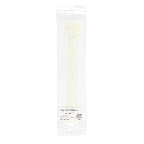 Beadle Wrap, 12 in L, 3.3 in Max Bundle Dia., Natural, 50 lb Strength, 15 PK