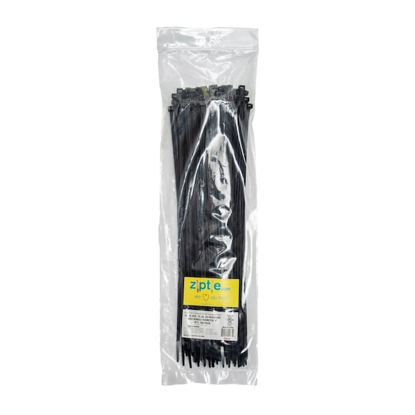Cable Tie, 14 in L, 4 in Max Bundle Dia., Black, Nylon, 75 lb Strength, 100 PK