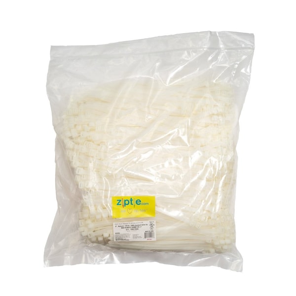Cable Tie, 8 in L, 2 in Max Bundle Dia., Natural, Nylon, 120 lb Strength, 1000 PK